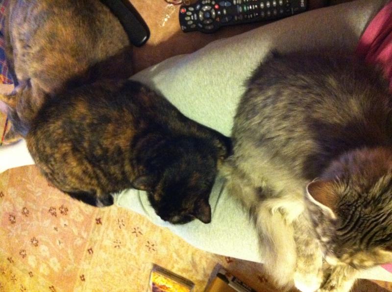 My cats (Puff, Tarot, and Lily) lined up for Light Wand sessions!